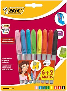 BIC Marking Marqueurs Permanents à Pointe Conique Moyenne - Couleurs Assorties, Blister de 6+2
