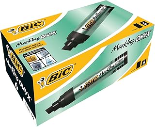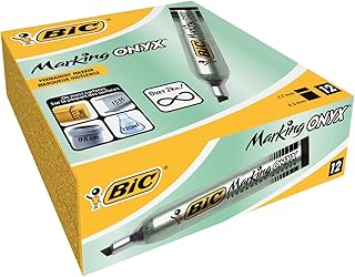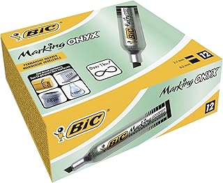 BIC Ecriture Marking Onyx 1481 Marqueurs Permanents à Pointe Moyenne Biseautée - Couleur Noire , Boîte de 12