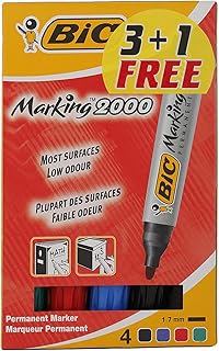 BIC Marking 2000 ECOlutions Marqueurs Permanents à Pointe Conique Moyenne - Couleurs Assorties, Blister de 4