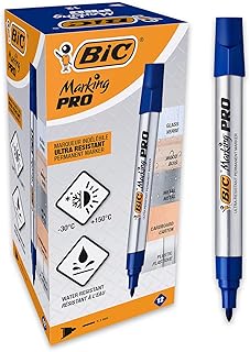 BIC Marking Pro Marqueurs Permanents à Pointe Conique Moyenne - Bleu, Boîte de 12