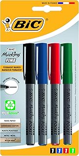 BIC Marking Fine ECOlutions Marqueurs Permanents à Pointe Conique Fine - Couleurs Assorties, Blister de 4