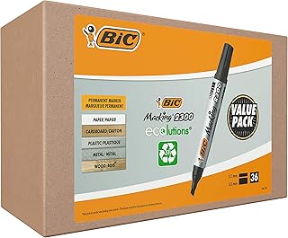 BIC Marking 2300 ECOlutions Marqueurs Permanents à Pointe Moyenne Biseautée - Encre Noire, Boîte de 36