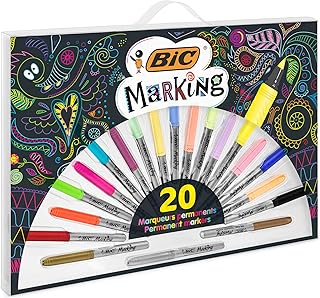 BIC Marking Marqueurs Permanents à Pointe Conique Moyenne (1,8 mm) - Assortiment de Couleurs dont 3 Métalliques, Boîte de 20