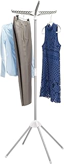 InterDesign Brezio séchoir à linge tripode, étendoir à linge en métal pour la buanderie, sèche-linge extensible, argenté/blanc/gris