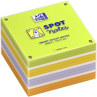 OXFORD Spot-Notes Bloc Cube Penses-Bêtes Adhésifs 7,5x7,5 cm Repositionnables 450 Feuilles Unies Compatible SCRIBZEE Multicolores