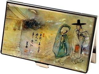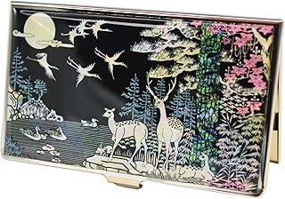 Sobre et élégant Porte-Cartes de Visite Nature. Artisanat Coréen en Nacre Naturelle. Design cerf et Nature