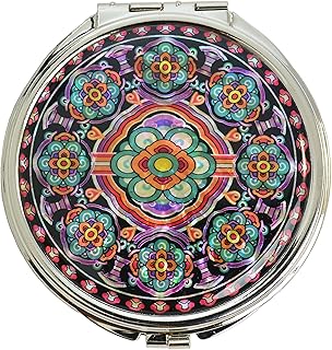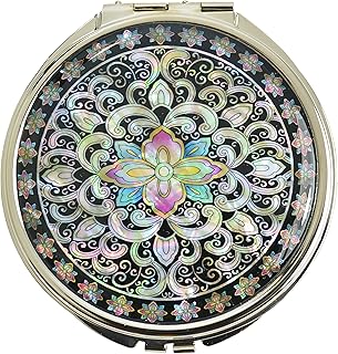 Miroir de poche design arabesque. Artisanat de luxe Coréen en nacre naturelle, double miroir rond 1x grossissant 2x