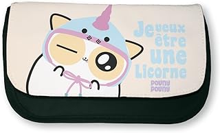 Trousse noir de maquillage ou d'école 'Je veux être une licorne' Pouny Pouny bonnet de licorne Chibi et kawaii - Fabriqué en France - Chamalow shop