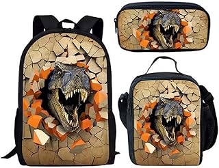 École Sac à dos/3pcs Enfants Sac à Sac à Dos Scolaire pour Les Filles Garcon Teenage Sac Scolaire Sac A Dos Primaire + Sac de boîte à Lunch + Crayon Sacs (Dinosaures) School Bag Set by chaqlin
