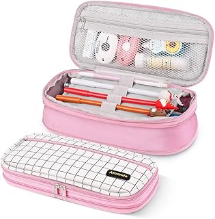 Afomida Trousse Scolaire Sac à Crayons Plumier Grande Capacité Étui à Stylo Fournitures Scolaires Bureau Porte-crayon Pliable Pochette Pour Fille Adolescent Étudiant avec Fermeture à Glissière, rose