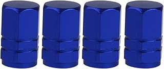 Lot de 4 Bouchon de Valve de Pneu Couvre Valve Anti Poussière pour Vélo Voiture Moto Hexagonal - Bleu