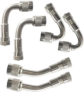 QitinDasen 6Pcs Professionnel Kit Adaptateur d'Extension de Valve de Pneu, Extension de Tige de Valve de Pneu, Prolongateur Coude pour Valve de Pneu, pour Voiture Camion Moto Vélo (45°, 90°, 135°)