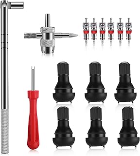 Demonte Valve Pneu Outil, 15Pcs Réparation de Valve Pneu pour Voiture avec Dissolvant de Noyau de Valve, Tiges de Valve Enfichables TR412 et Noyaux pour Voiture Moto Vélo